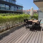 0-slaapkamer Waterfront Apartment On The Canal ligt in de Nieuwpoort Stad wijk en biedt snelle toegang tot de Westfront Nieuwpoort, die binnen 6 minuten wandelen ervan ligt. Dit 70 m^2 grote appartement omvat een terras en parkeerplaatsen in de buurt.